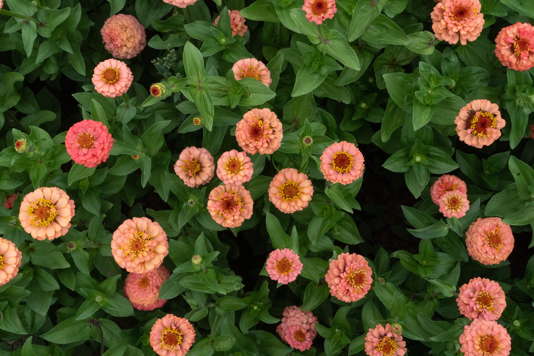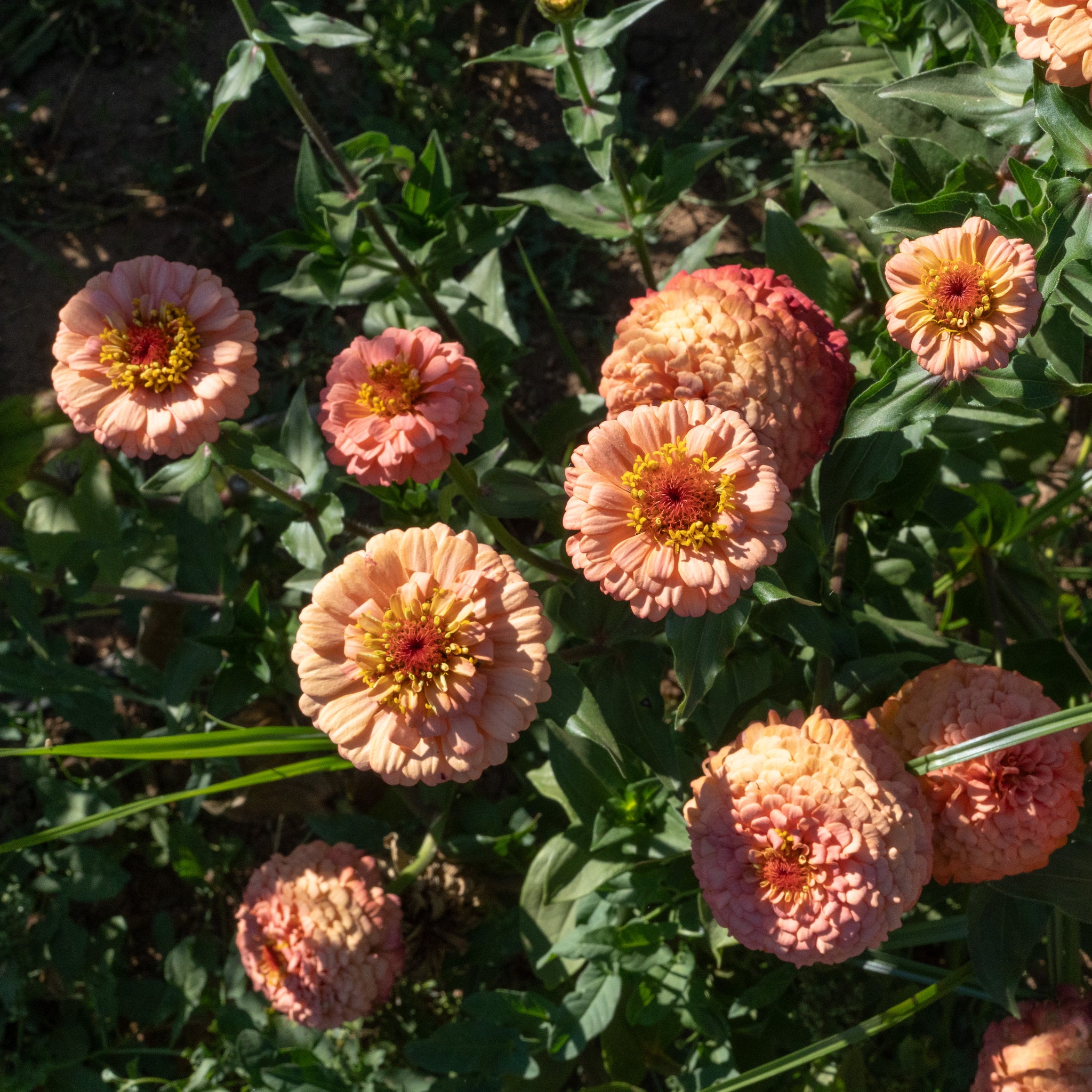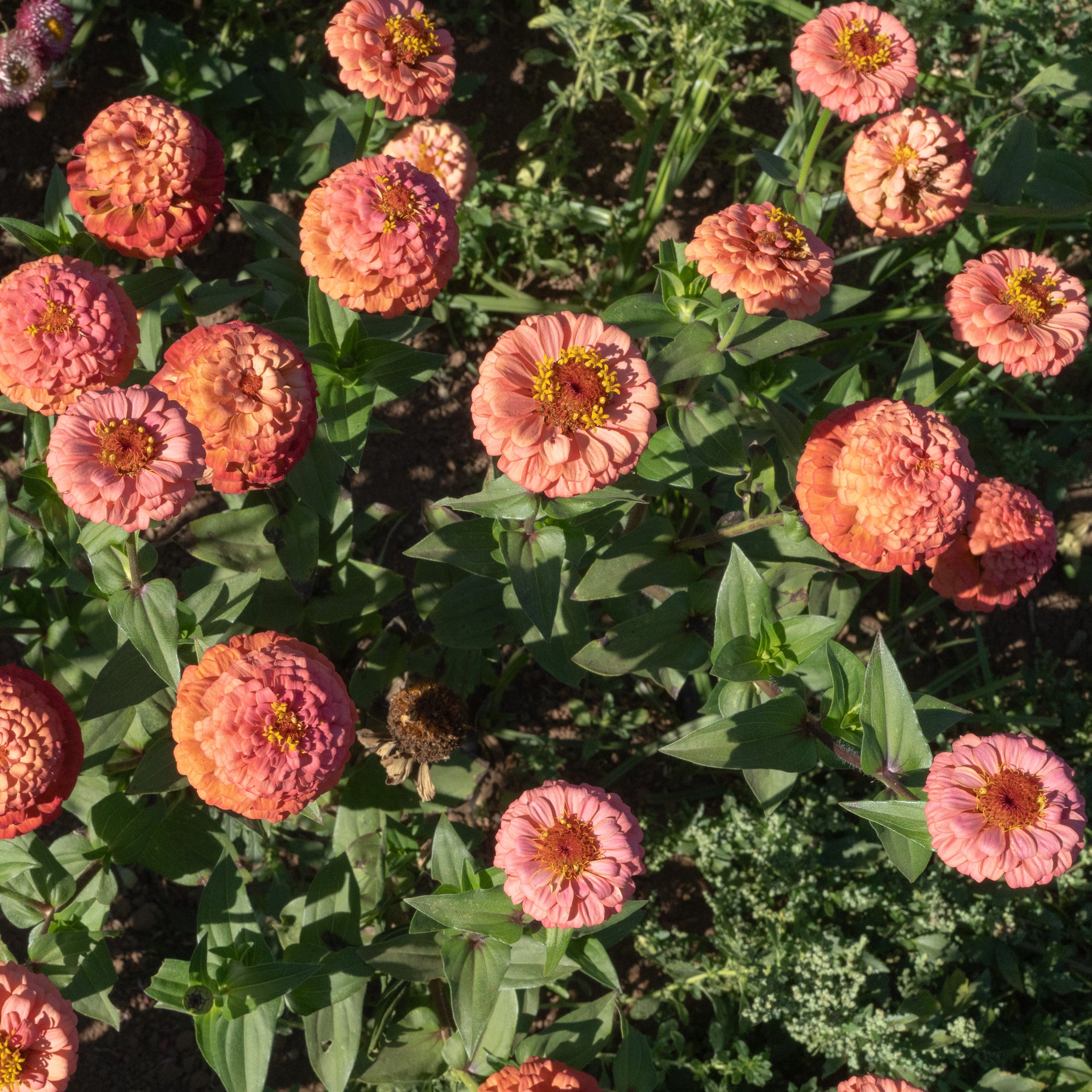 Oklahoma Salmon Zinnia is a salmon-pink colored zinnia that produces medium sized double and single blossoms. Seeds are certified organic.