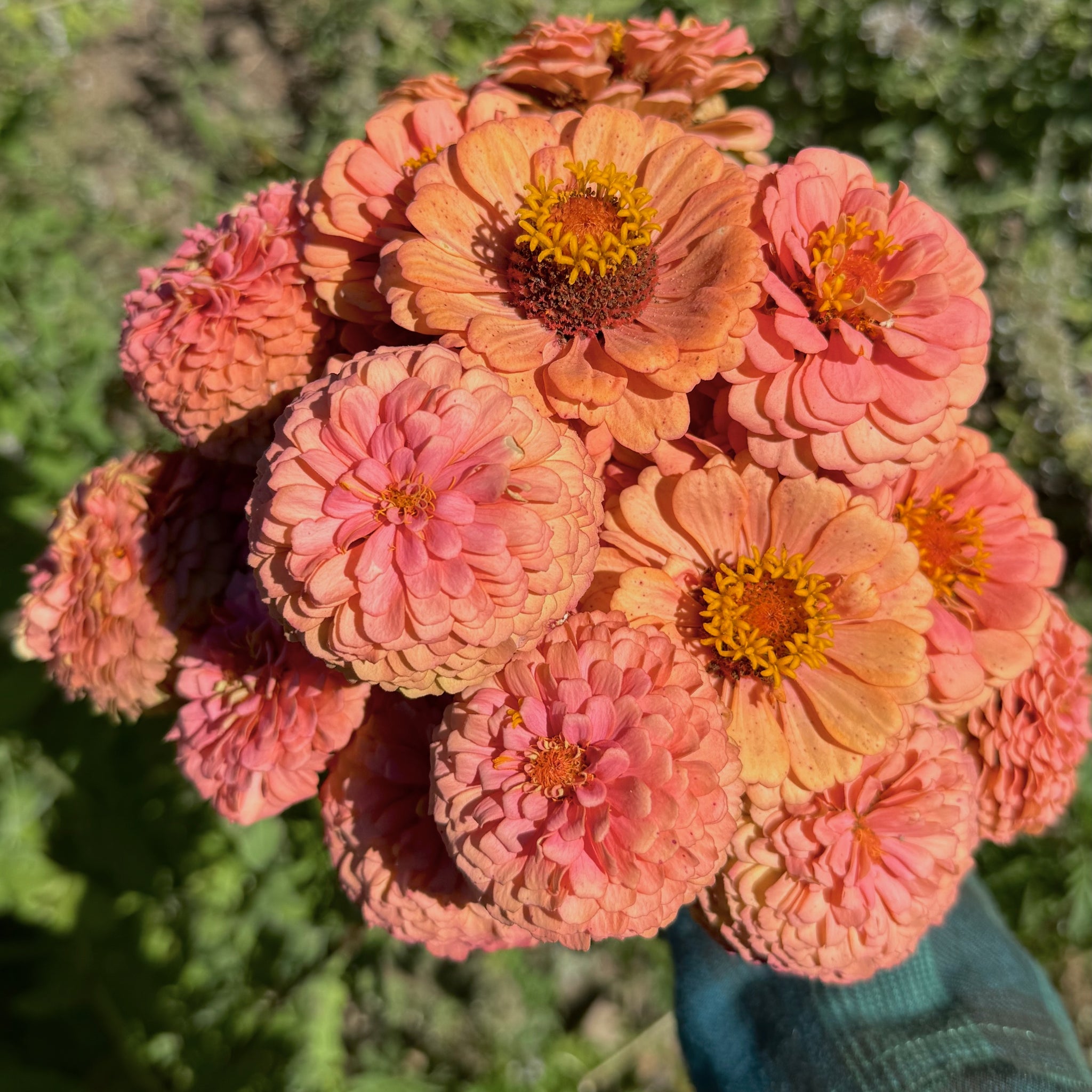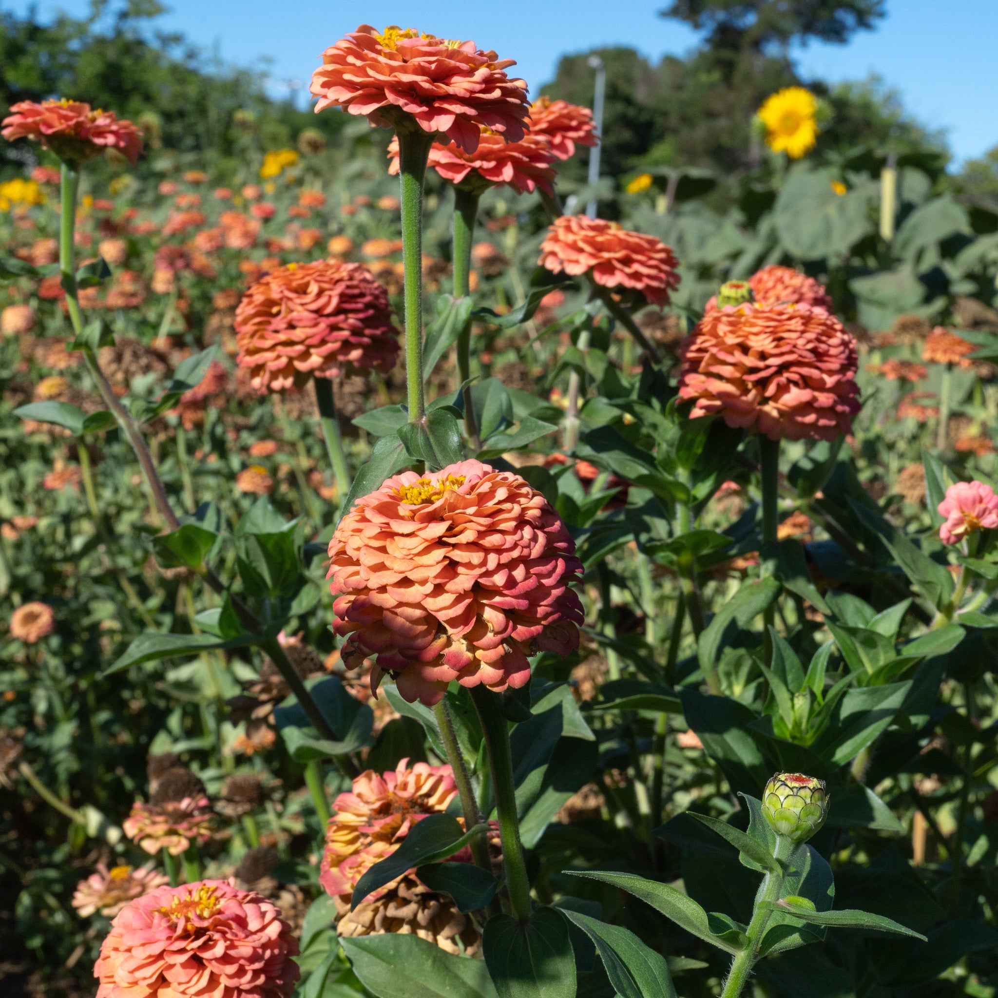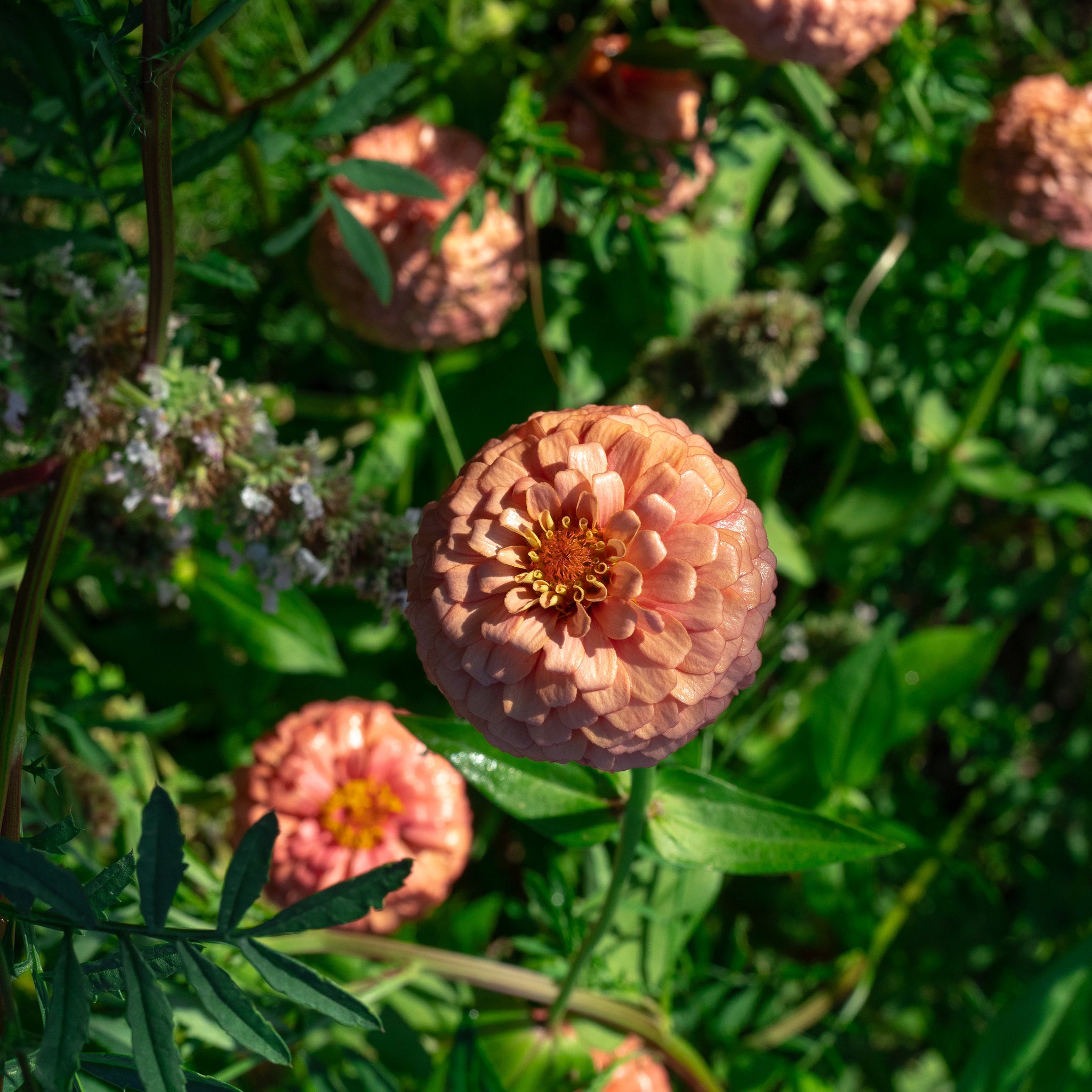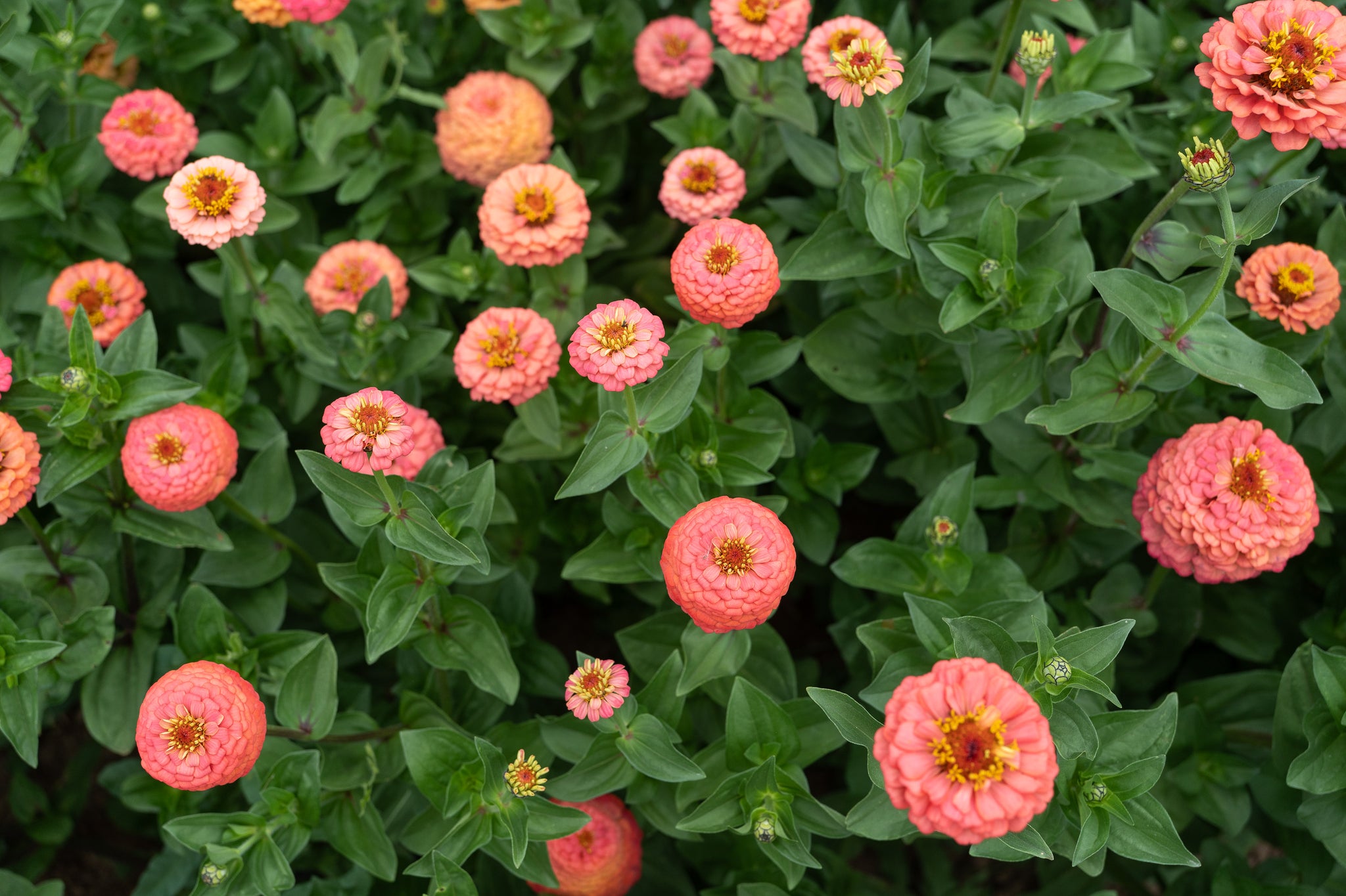 Oklahoma Salmon Zinnia is a salmon-pink colored zinnia that produces medium sized double and single blossoms. Seeds are certified organic.