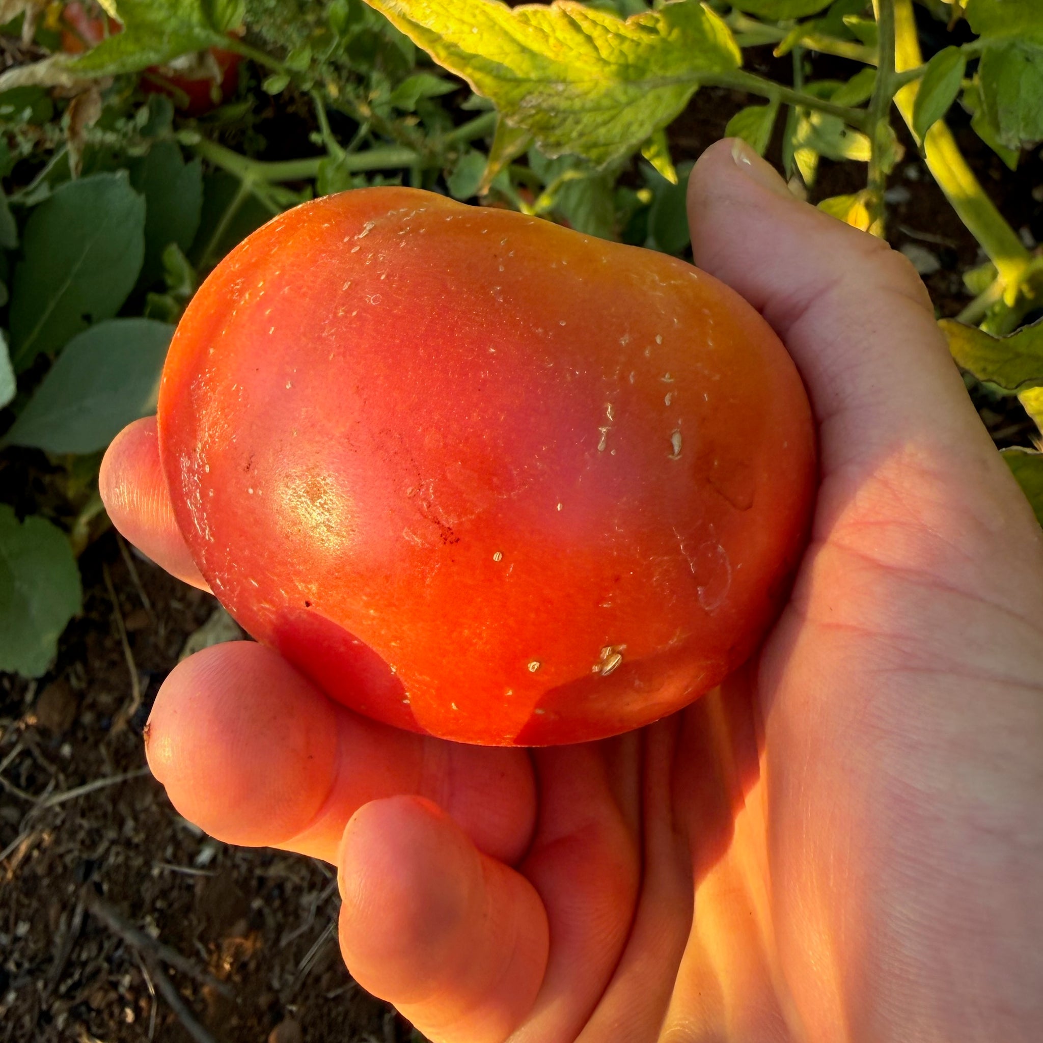 The quintessential heirloom tomato (Solanum lycopersicum). Large, flavor-packed red-pink “beefsteak” fruits that can weigh over a pound! Indeterminate. Seeds are certified organic.