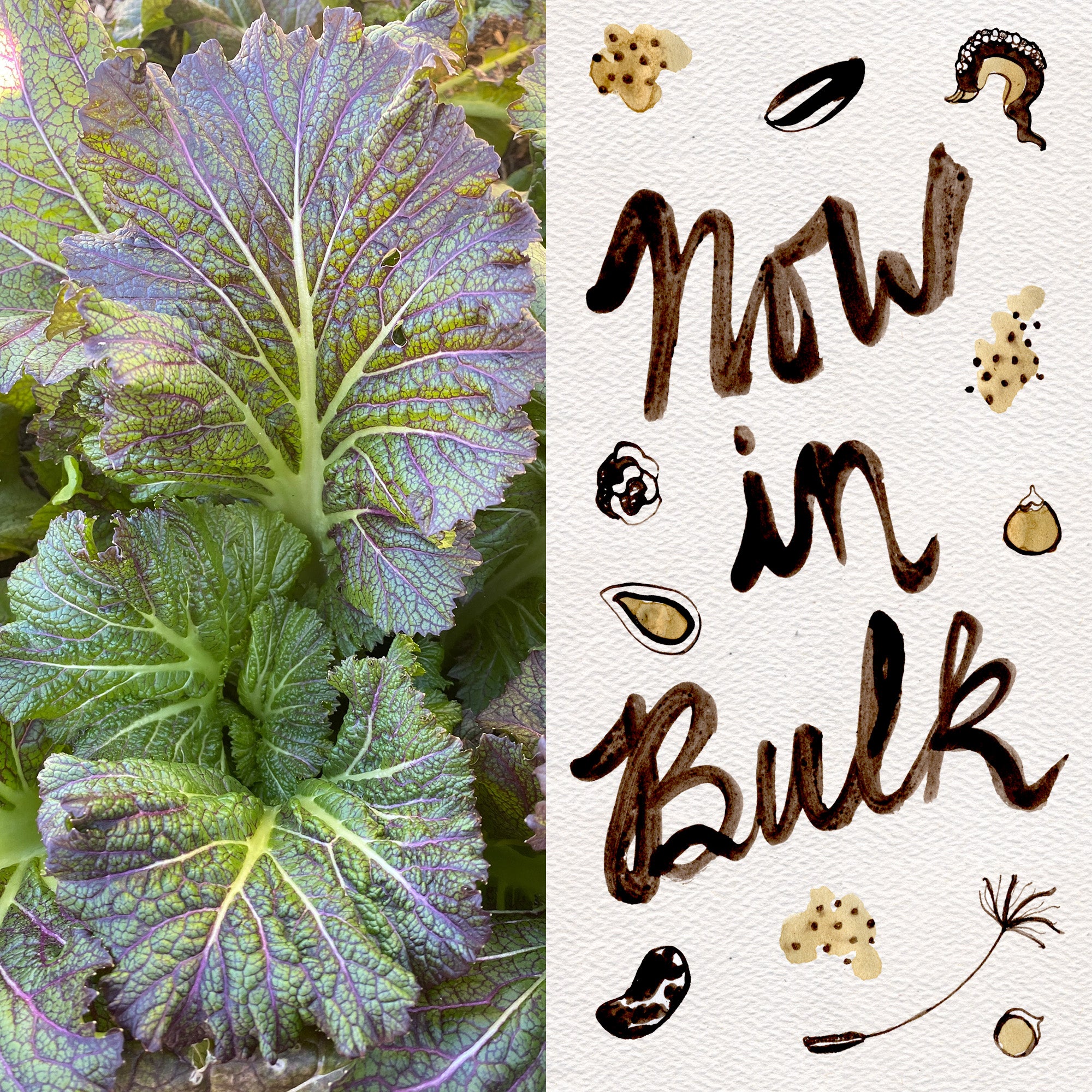 Dragon Tongue Mustard is a cool season stir-fry green with a spicy flavor. Green leaves mature purple. Also called “Ho Mi Z.” Seeds are certified organic.