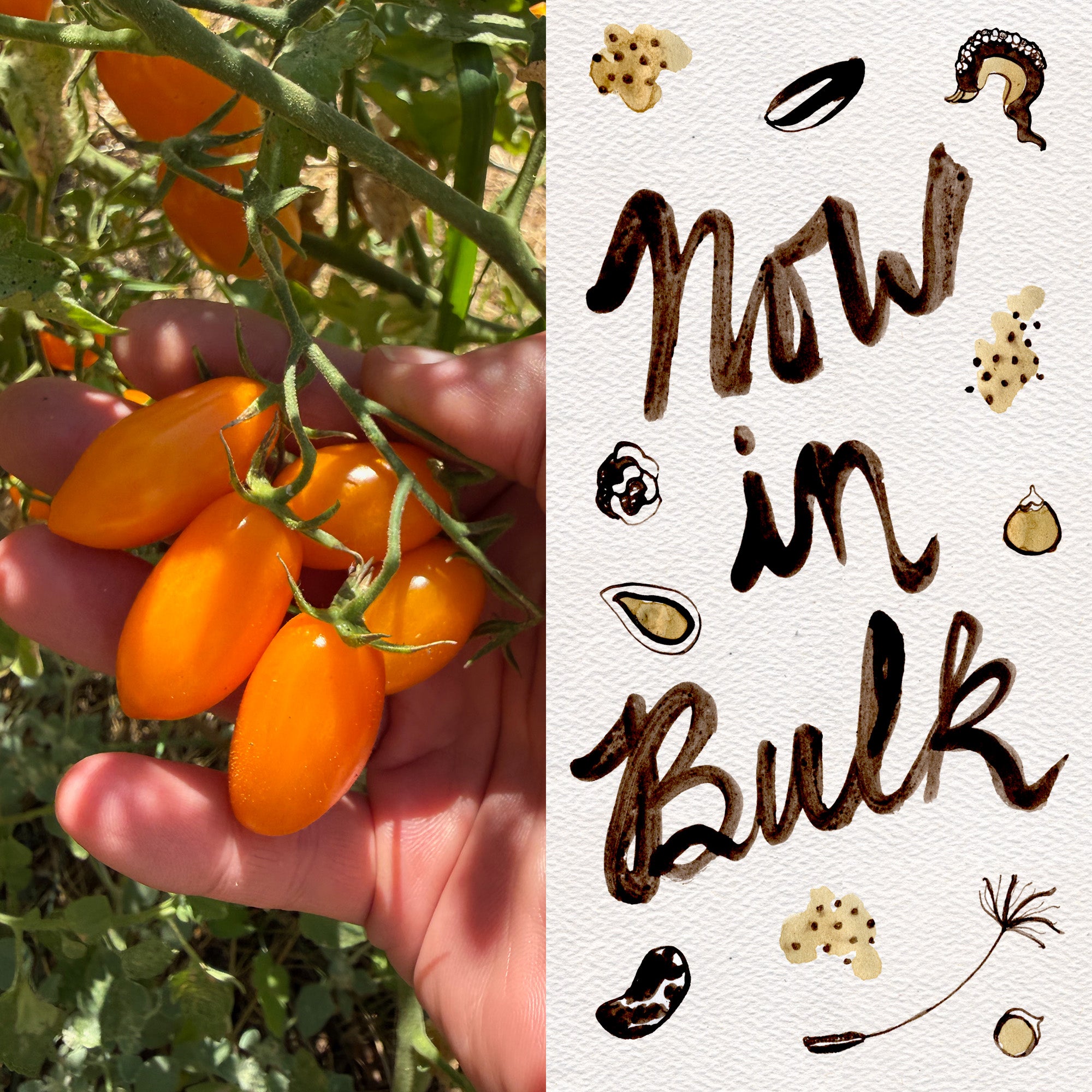 An Italian heirloom, complimentary to Sweet Red Datterino but much smaller, and more date-shaped than the more cherry-like red. Highly productive, indeterminate (requires trellising), fruits ripen from green to yellow to orange (fully ripe).